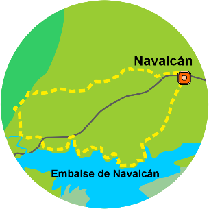 El sendero se extiende hacia el oeste de Navalcán, recorriendo parajes como El Chaparral, Embalse de Navalcán, La Retuerta, Dehesa Calabazas, o La Cebollosa.